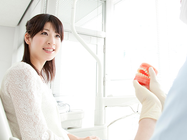 検査結果をふまえ、症状の原因や治療方法、期間などを丁寧にご説明いたします。また、現在の症状だけでなく、顎関節やかみ合わせなどお口全体のバランスにも配慮し、将来的なトラブルの予防を見据えた包括的なプランもご提案いたします。治療はご納得いただいたうえで進めてまいりますので、ご不明な点や気になることがあれば、どうぞお気軽にご相談ください。