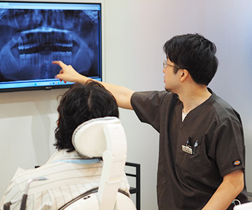 検査結果をふまえ、症状の原因や治療方法、期間などを丁寧にご説明いたします。また、現在の症状だけでなく、顎関節やかみ合わせなどお口全体のバランスにも配慮し、将来的なトラブルの予防を見据えた包括的なプランもご提案いたします。治療はご納得いただいたうえで進めてまいりますので、ご不明な点や気になることがあれば、どうぞお気軽にご相談ください。